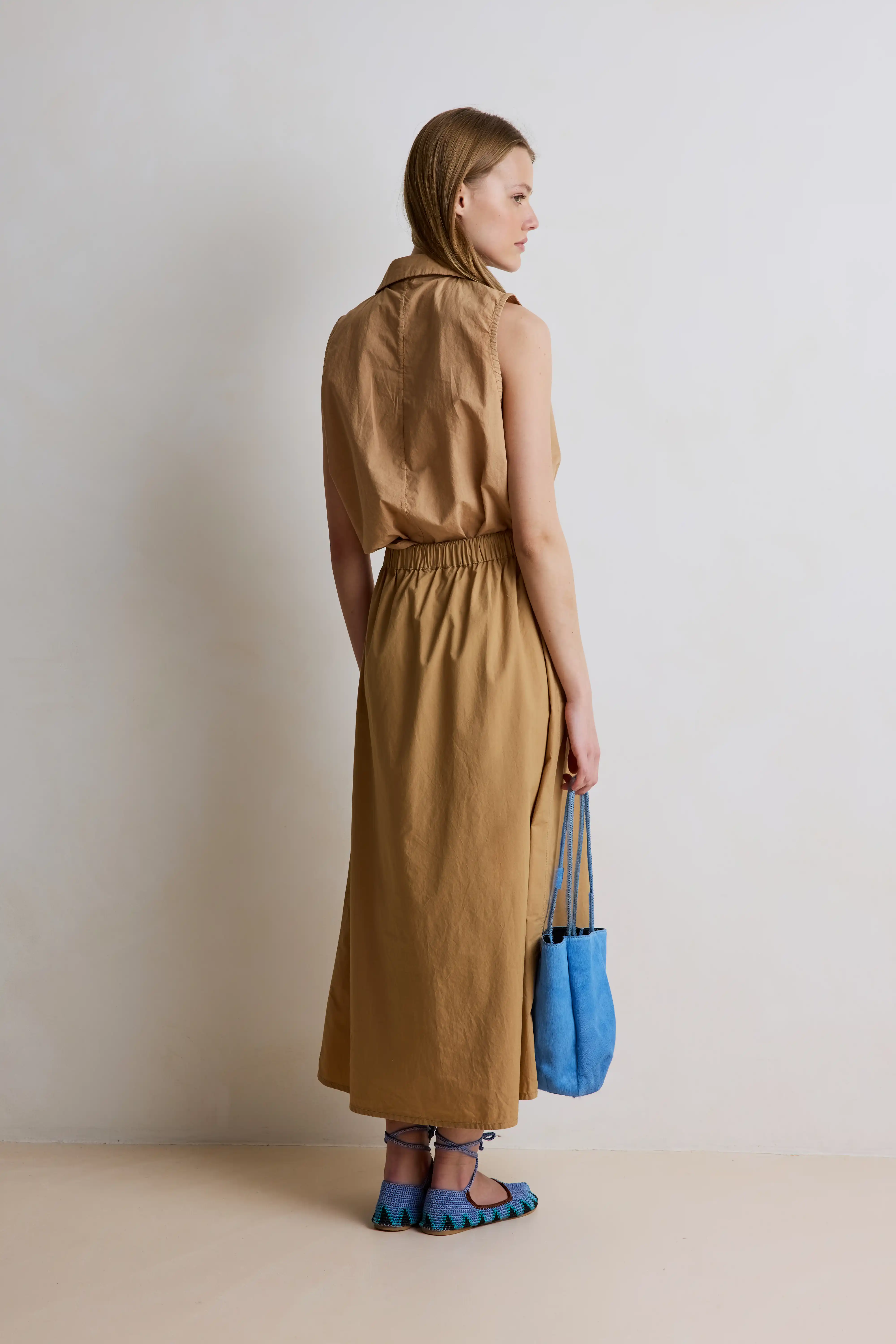 La jupe Dolly est longue avec un élastique à la taille et deux cordons fantaisies. Elle est donc très confortable. Elle possède également deux poches latérales.