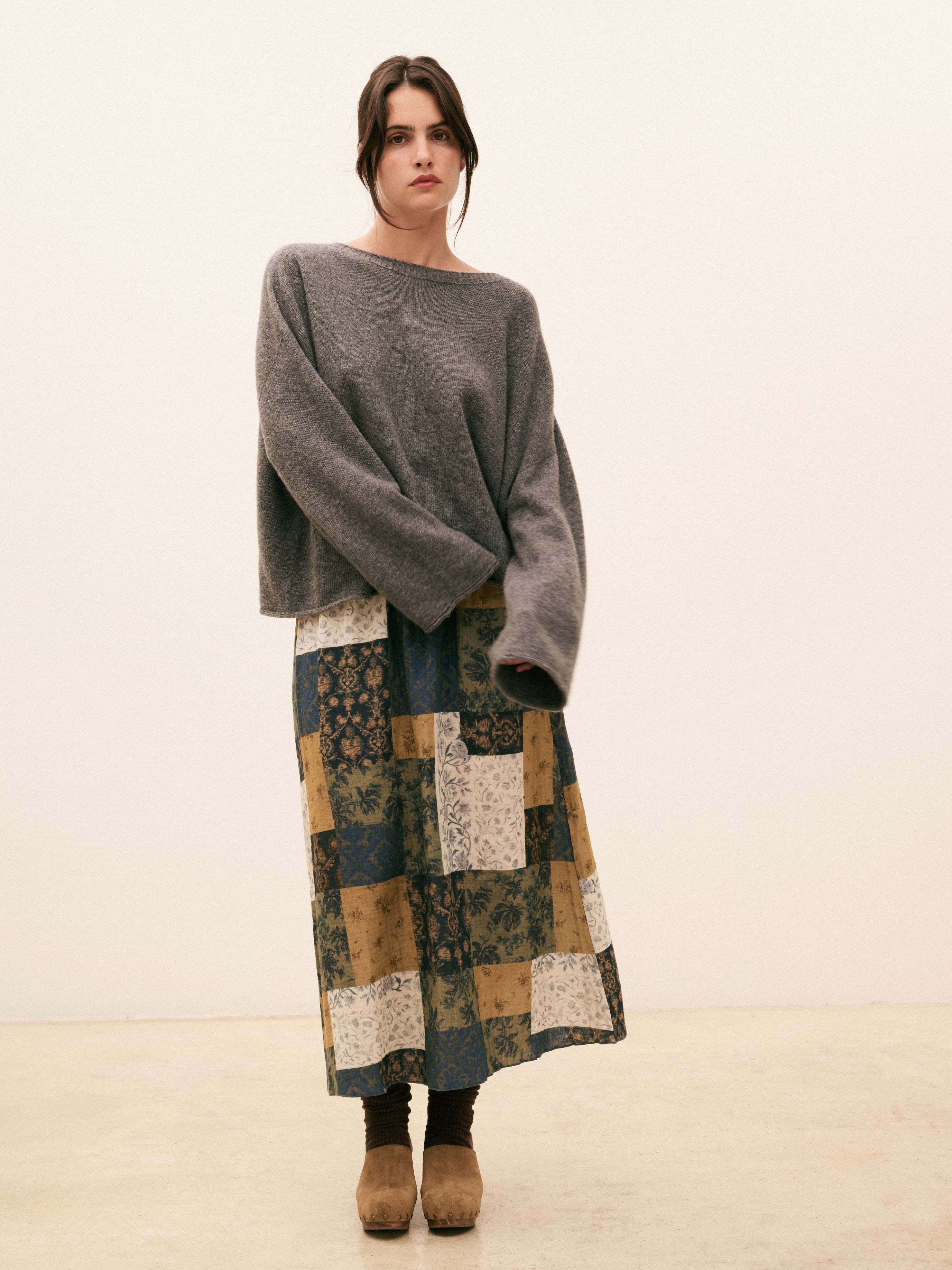 Son col est rond, ses manches longues et droites. Il a une coupe oversize qui lui permettra d'être élégant seul ou sur une chemise ou une robe.